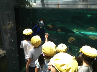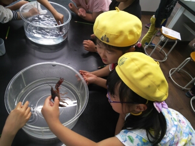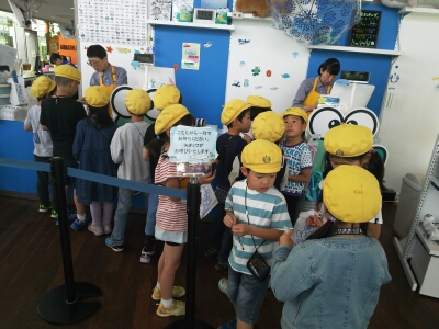 水族館を見学した後は、クラスごとに「バックヤードツアー」「ザリガニ教室」「買い物」を行いました。とても楽しい遠足になったようです。
