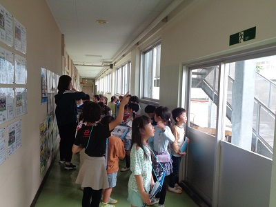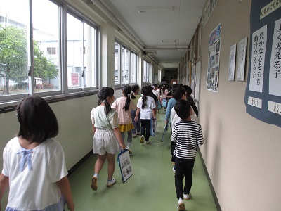 クラスごとに先生を先頭に、学校内を見学しました。