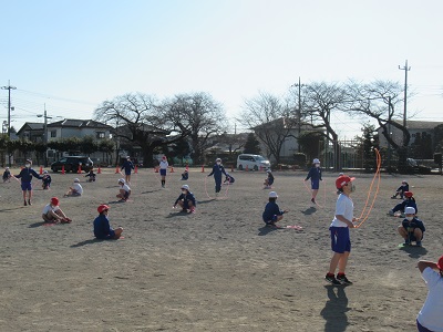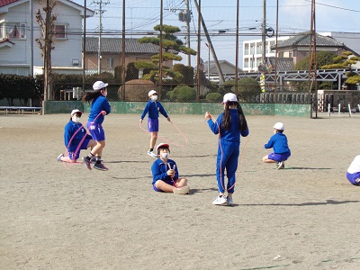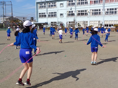 あや跳びや二重跳びはペアで数を数え合いました。練習では上手くいかなかった跳び方も本番で成功した子が,「先生,跳べたよ!」などと,嬉しい報告をしてくれました。
