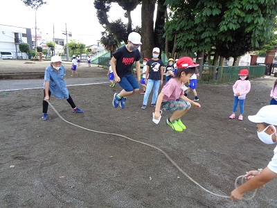 大縄を使って「郵便屋さん、落とし物。」と元気に歌っています。