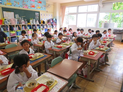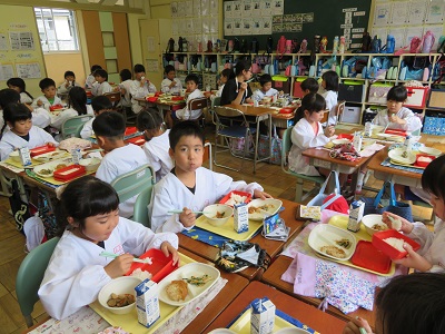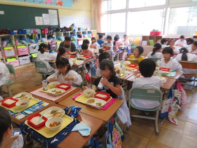 1年生が、10月からグループになって給食を食べています。