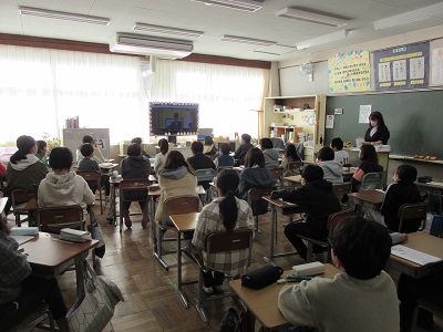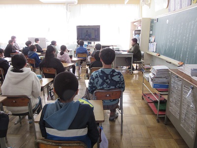 教室では、みんな真剣にお話を聞いていました。