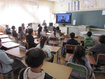 業間には、オンラインで冬休み明け集会を行いました。
