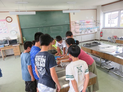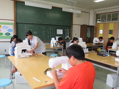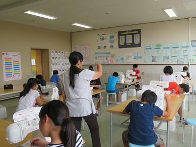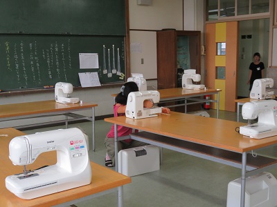 http://www.kaminokawa-tcg.ed.jp/schoolhp/kaminokawaele/?page_id=48授業時間に十分活動ができるよう、ボランティアの方がミシンを並べておいてくれます。