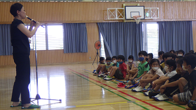 先生の演奏する曲名を当てたり、息の吹き方を教えていただいたりして楽しく学ぶことができました。