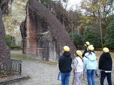この岩の前で、岩に斬りかかる真似をする子が続出!!