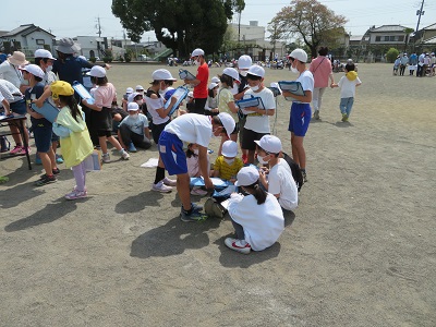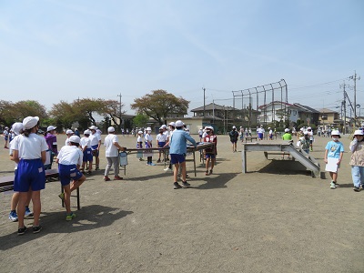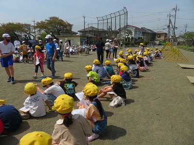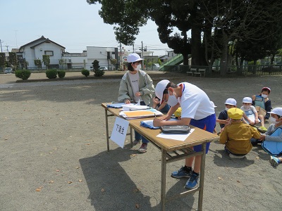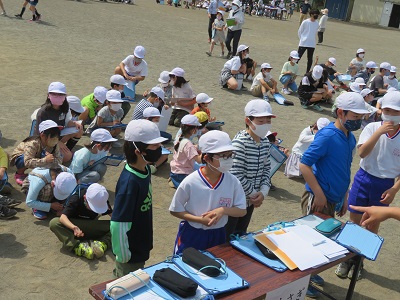 今年度は、密を避けるため、校庭で行いました。