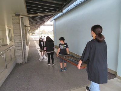 6年生が長机や表示を用意しました。