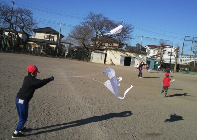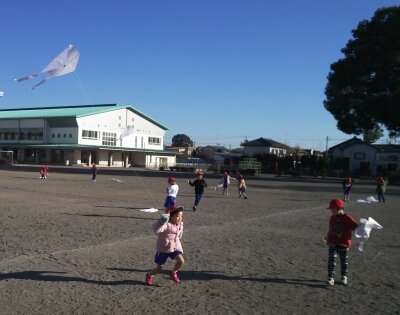 この日は風がなく、あまり高く飛ばせませんでしたが、子どもたちは楽しそうに走り回り、凧揚げを楽しんでいました。