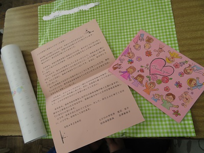 お礼のカードと手紙、プレゼントのカレンダーを丁寧に袋に入れて、ボランティアに関係のある児童に届けました。
