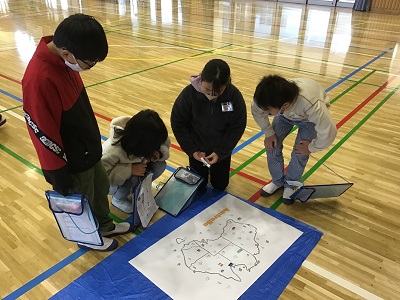 5年生は、ALTから情報を集め、外国の地図を作りました。