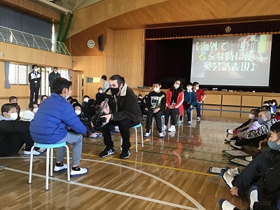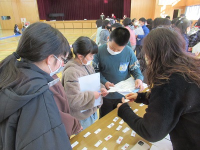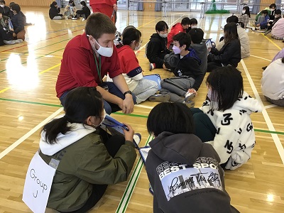 町内の英語指導助手(ALT)7名が上小に集まり、英語を使った様々な活動を行いました。