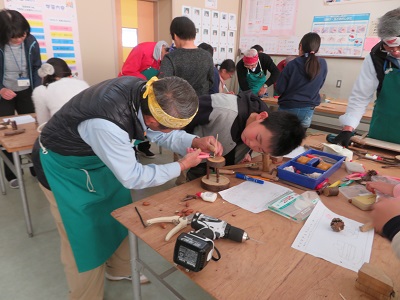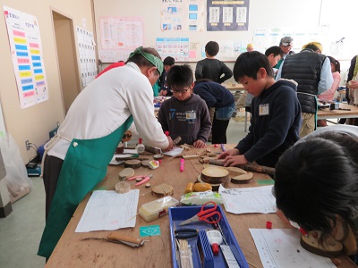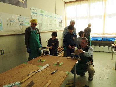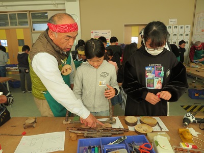 環境わごんのスタッフの皆さんは、ホンダの退職された方々です。安全面に配慮しながら、のこぎりなどの道具の使い方を教えてくれます。