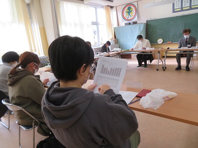 今回の学校運営協議会は、学校関係者評価会議でした。今年度の教職員による学校評価、児童アンケート、保護者アンケートの結果をもとに、話し合いを行い、その内容を次年度の学校運営に生かすというものです。