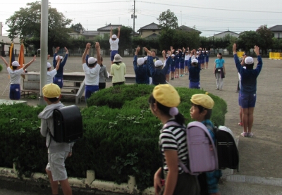 係児童は、登校時刻前から練習を行っています。
