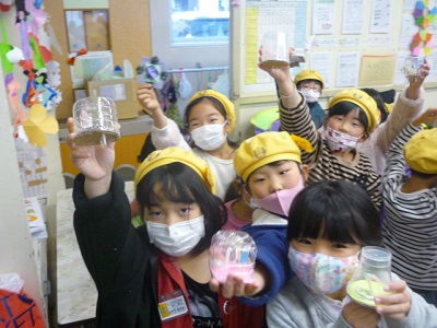 1年生が、プレゼントのおもちゃを見せてくれました。