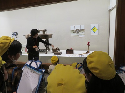 グループに分かれて解説を聞きます。「見たことある!」と声はしますが、「使ったことがある!」と言う児童は少なく、興味津々です。
