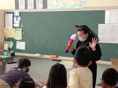 校長先生は、魔女に変身し、教室を回り子供たちに素敵な魔法をかけてくれました。