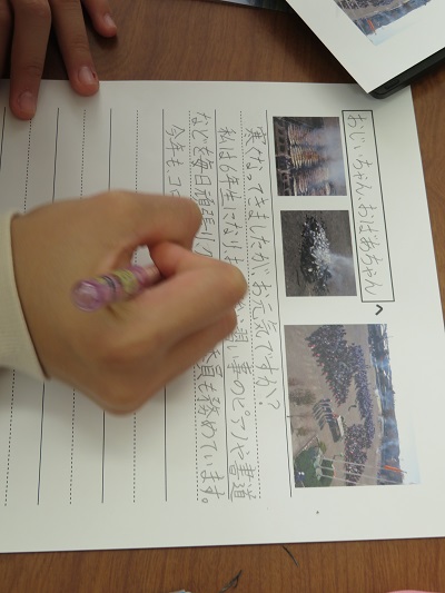 一人一人、心を込めて、収穫祭や学校の様子についてお手紙を書きました。