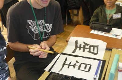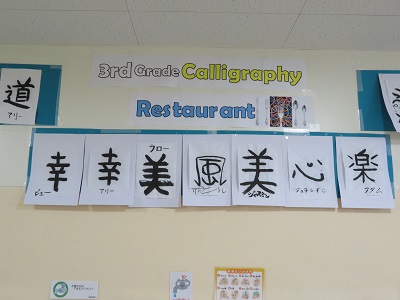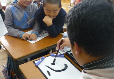 3年生は、一緒に日本の文化「書道」を体験しました。