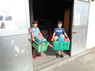 朝のうちに、体育倉庫の鍵を開け、みんなが使うボールを出します。