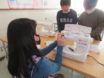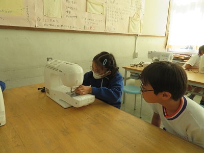 ミシンの中がどうなっているのか、子供たちも興味津々です。