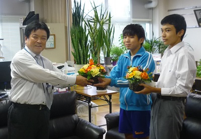 上三川中学校福祉人権委員会より、アレンジフラワーの寄贈がありました。