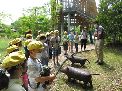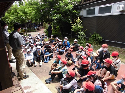 色々な生き物がいると聞き、子どもたちは興味津々です。