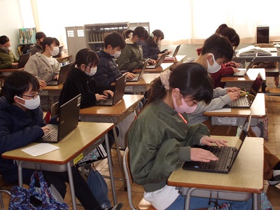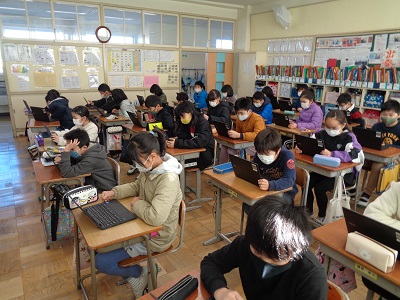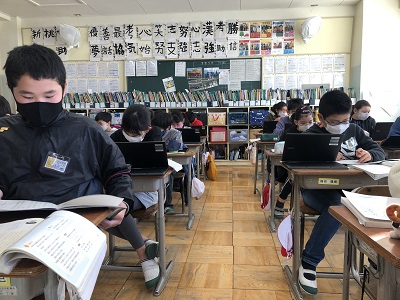 職員による初期設定を終え、新しく導入されたタブレットを使った学習が始まりました。