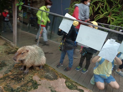 カピバラもいました。可愛いと興味津々な様子で見ていました。