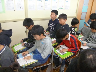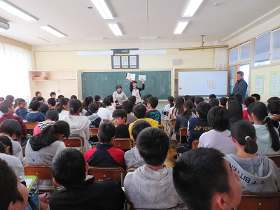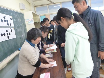 目の不自由な方が、普段どのような生活をしているのか、料理や掃除はどうしているのか、子供たちは、とても興味深く聞いていました。点字の本を紹介してくれました。「ハリーポッター」の本を点訳すると、10冊にもなると聞き、とても驚いていました。目の不自由な方が使う道具の紹介として、そろばんや腕時計、オセロなども紹介してくれました。点字の打ち方を教えてもらい、一人一人、自分の名前を点字で打って、実際に読んでもらいました。明るく前向きなお話に、障がいを持っている方への思いが変わってきているのを感じます。