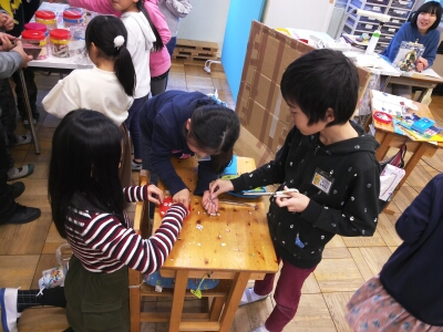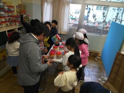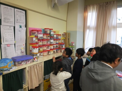 委員会の児童の他にも、児童の有志が休み時間にボランティアでベルマークの仕分けを行っています。