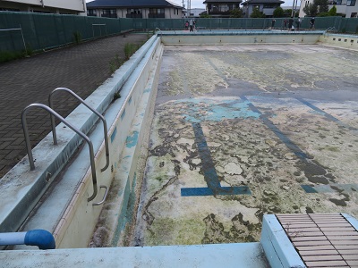 清掃前のプールは、こんな感じで汚れていました。
