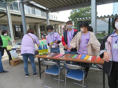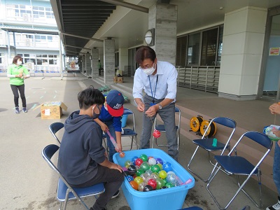 早く来た6年生も、ヨーヨーを作るお手伝いをしてくれました。
