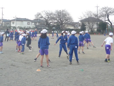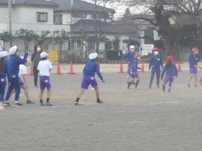 密を避けるため,各クラスを4チームに分け試合を行いました。普段は違うクラスですが,どのチームでも協力している姿が見られました。