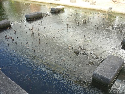 中庭の池には、このところ毎日氷が張っています。