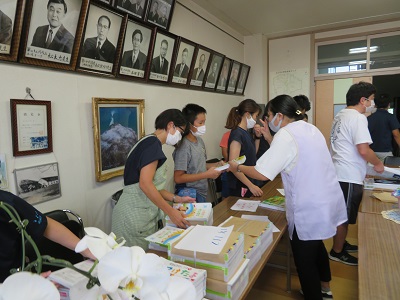 昼休みでしたが、6年生が各クラスに運んでくれました。