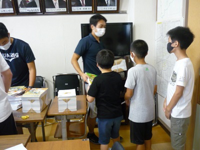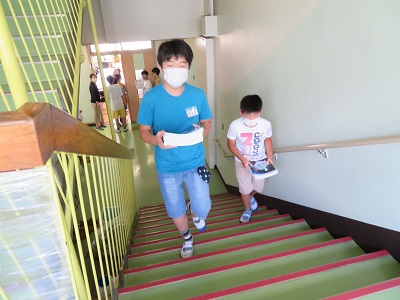 いつもは静かな校長室前が、めずらしく混雑していました。でも無言で働く6年生、しっかり新しい生活様式が身に付いています。