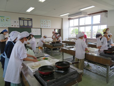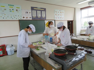 コロナ禍になってからは、一人で作って自分で食べる調理実習を行っています。