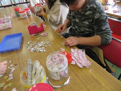 授業参観の日に合わせて、厚生部の方がベルマーク集計をしてくれています。