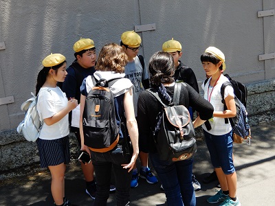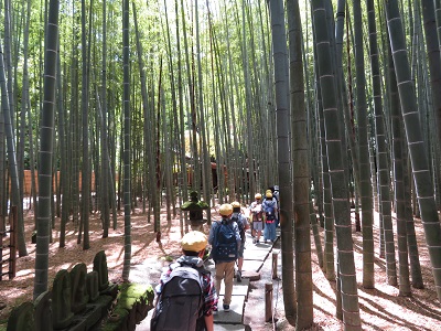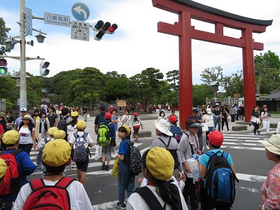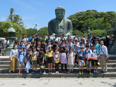 ②ホテル出発式③山下公園③鎌倉班別活動高徳院(大仏)をスタートし、お寺や神社を巡り、昼食をとり、お土産を買って、集合場所の鶴岡八幡宮まで、協力して行動することができました。④外国の方にインタビュー ALTとボランティアの方に御協力いただいたインタビューの練習の成果を十分発揮できたようです。⑤到着式