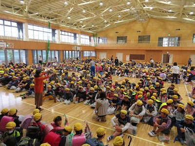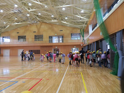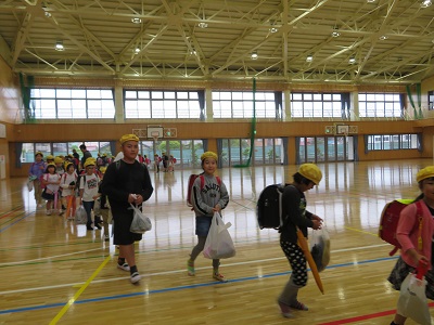 今年度からは、悪天候や保護者への引き渡しの事などを考えて、一斉下校は体育館でも行うことになりました。