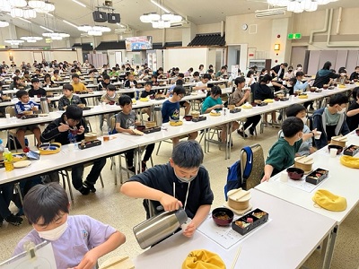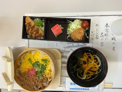 お昼ごはんは、わっぱ飯です。おいしくいただきました。