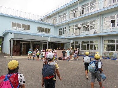 9月になり、各クラスからあいさつ応援隊を募り、火・木・金曜日の朝、各昇降口で挨拶の呼び掛けをしています。
