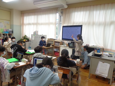 それぞれのクラスでよりよい環境づくりのために呼びかけたいことを考え、スライドを使って発表しました。