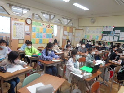 「クリーン上三川」のまとめの活動として環境サミットを開催しました。水の環境やごみ問題について、各クラスを会場に話合いを行いました。