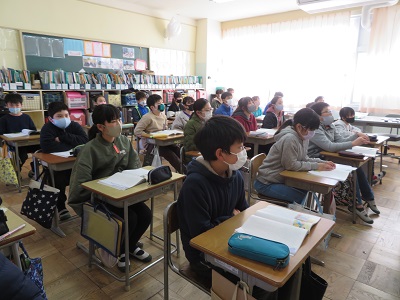 そこで、いつも上小にボランティアに来てくださっている方にインタビューし、それを授業の最後に使うことにしました。