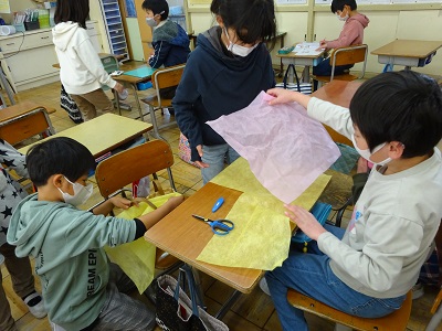 なかよし班や登下校でお世話になった6年生のために一生懸命作りました。