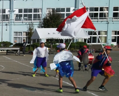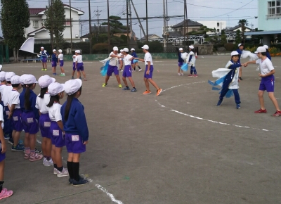 応援団員は、衣装を身に付けて気合いを入れて練習しました。