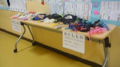 参観日には、このようにお知らせしていますが、記名があれば持ち主に返すことができます。